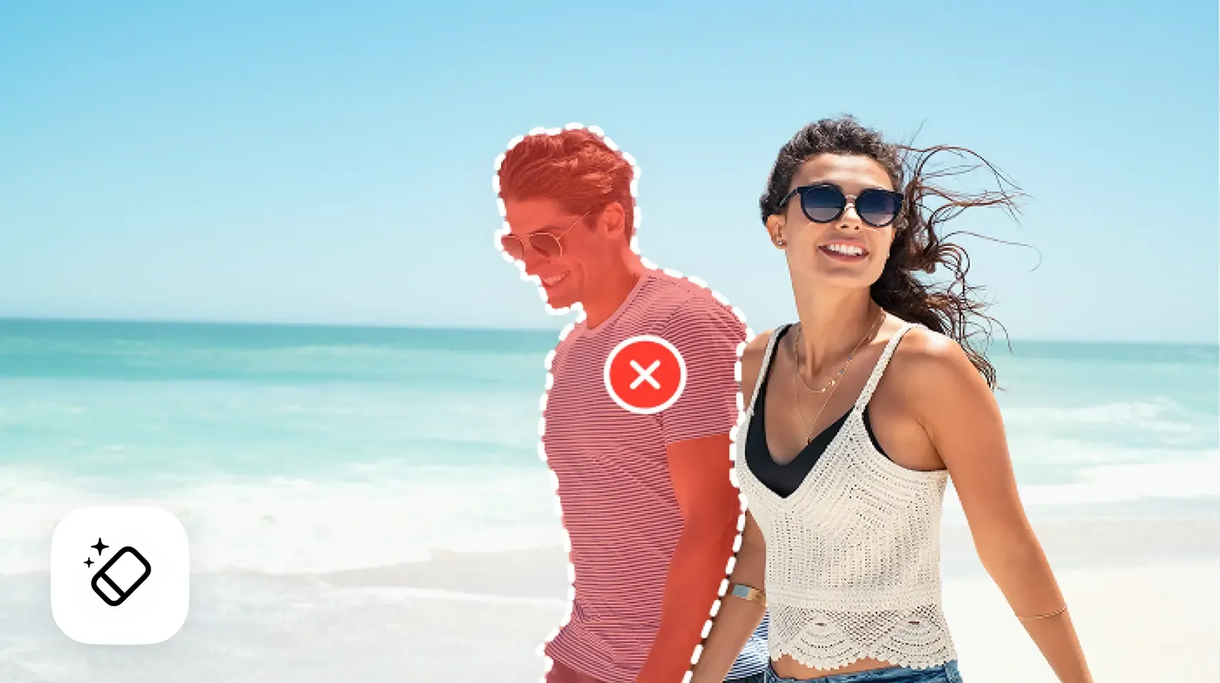 The built-in magic eraser can remove any unwanted element — from an unwanted person in the background to logos and watermarks.
